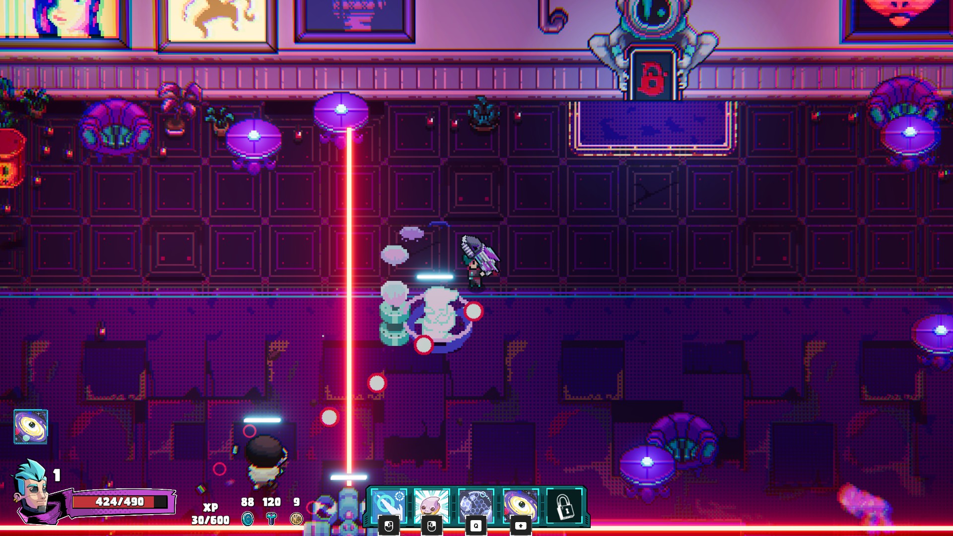 O visual em pixel art é envolvente, a atmosfera cyberpunk funciona muito bem e a variedade de armas e upgrades garante partidas sempre diferentes, apesar de frustrantes em alguns momentos.